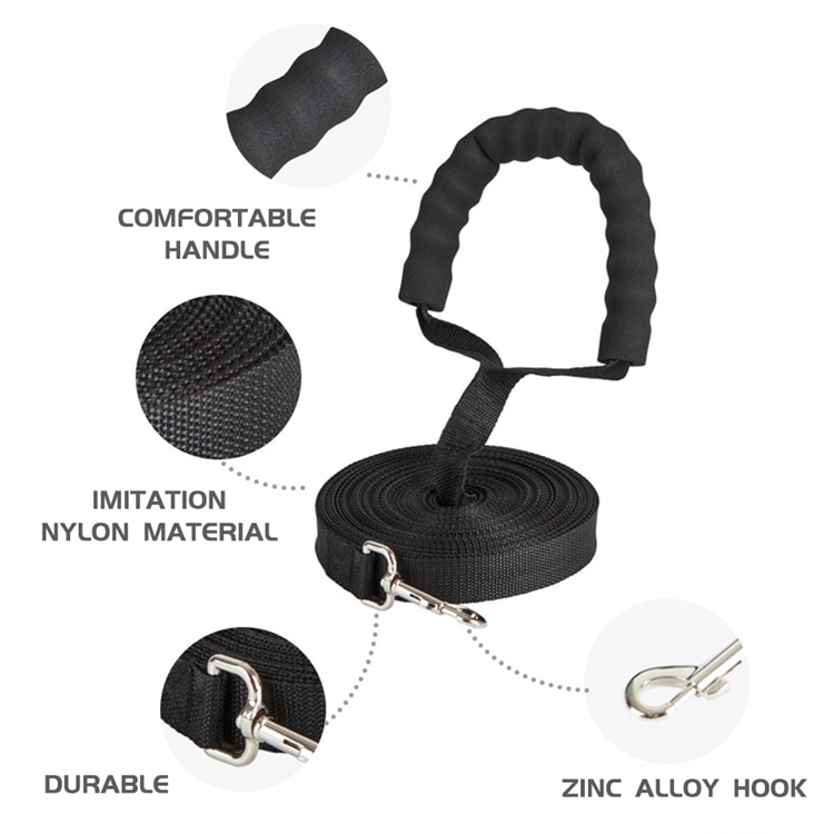 This pet leash is made of nylon, sturdy and durable, suitable for puppy, small medium and large dogs. Upgraded version of the sponge comfortable handle, not restrained.360-degree rotating metal hook, durable. A variety of optional length: 1.2 m / 1.5 m / 1.8 m / 3 m / 4.5 m / 6 m  / 10 m, suitable for indoor and outdoor dog lead rope. A pet leash is necessary for pets to go outdoors.